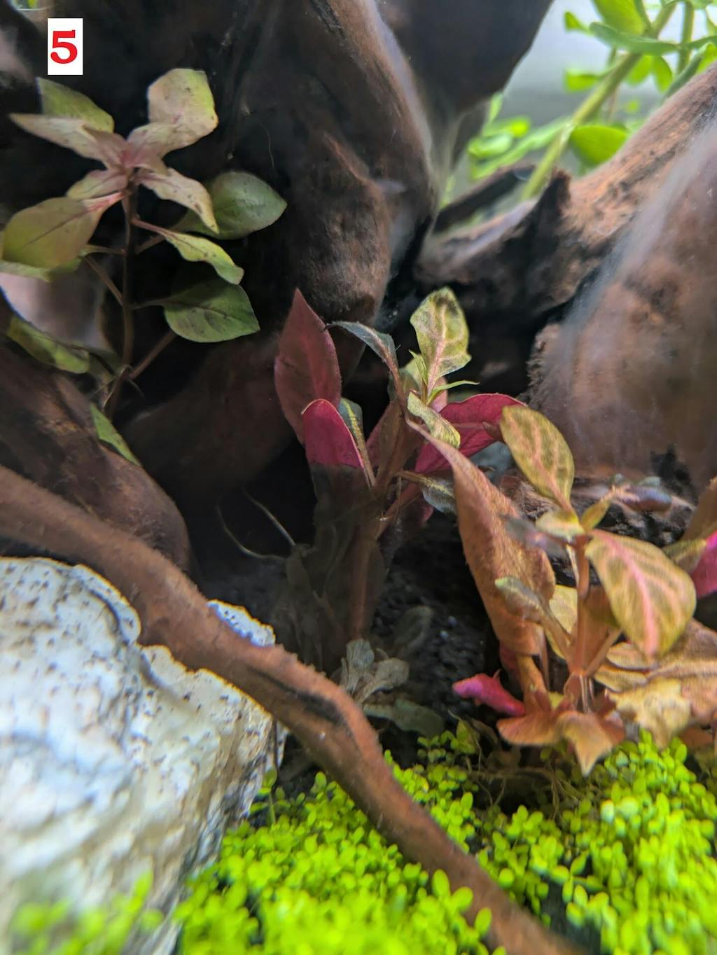 Under high light and CO₂, this plant displays its most intense hues and maintains a low, bushy form—perfect for creating vibrant patches of color or framing hardscape elements in nature-style aquascapes.