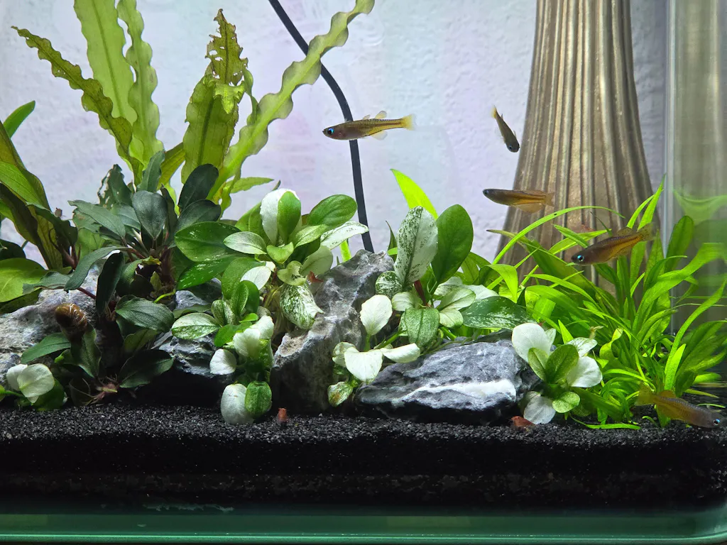 We offer this miniature size of Anubias Pinto, which is still young and small, making it easier to adapt to your aquarium. It is a perfect fit for smaller, nano tanks, and will grow bigger in your aquarium over time. Compact in size, it is ideal for small tanks and aquascapes. Its robust nature and adaptability to a wide range of water conditions make it an excellent choice for both beginners and seasoned aquarists.