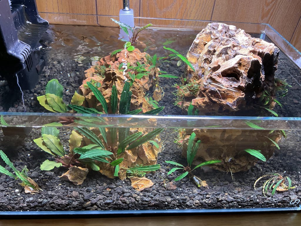 Hardy and Adaptable: Known for its resilience, Bucephalandra Pink Godzilla thrives in a range of water conditions. It requires minimal maintenance and can adapt to both low-tech and high-tech aquarium setups, making it suitable for all levels of aquarists.
