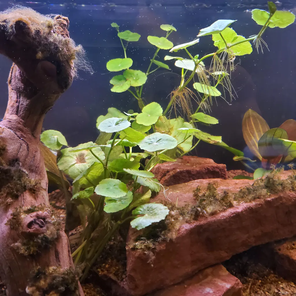 Brazilian Pennywort (Hydrocotyle leucocephala) is a fast-growing, beginner-friendly aquatic plant prized for its vibrant green, round, coin-shaped leaves and versatile growth habit. Its creeping stems and runners allow it to spread quickly, creating a lush, natural look in freshwater aquariums.