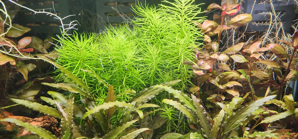 This stem plant is known for its fine, needle-like foliage that resembles conifer branches, creating compact vertical clusters of vibrant green. Its lush, feathery texture adds motion and contrast when planted among broader-leaved or red-hued plants—making it a dynamic choice for both midground and background areas of the aquarium.